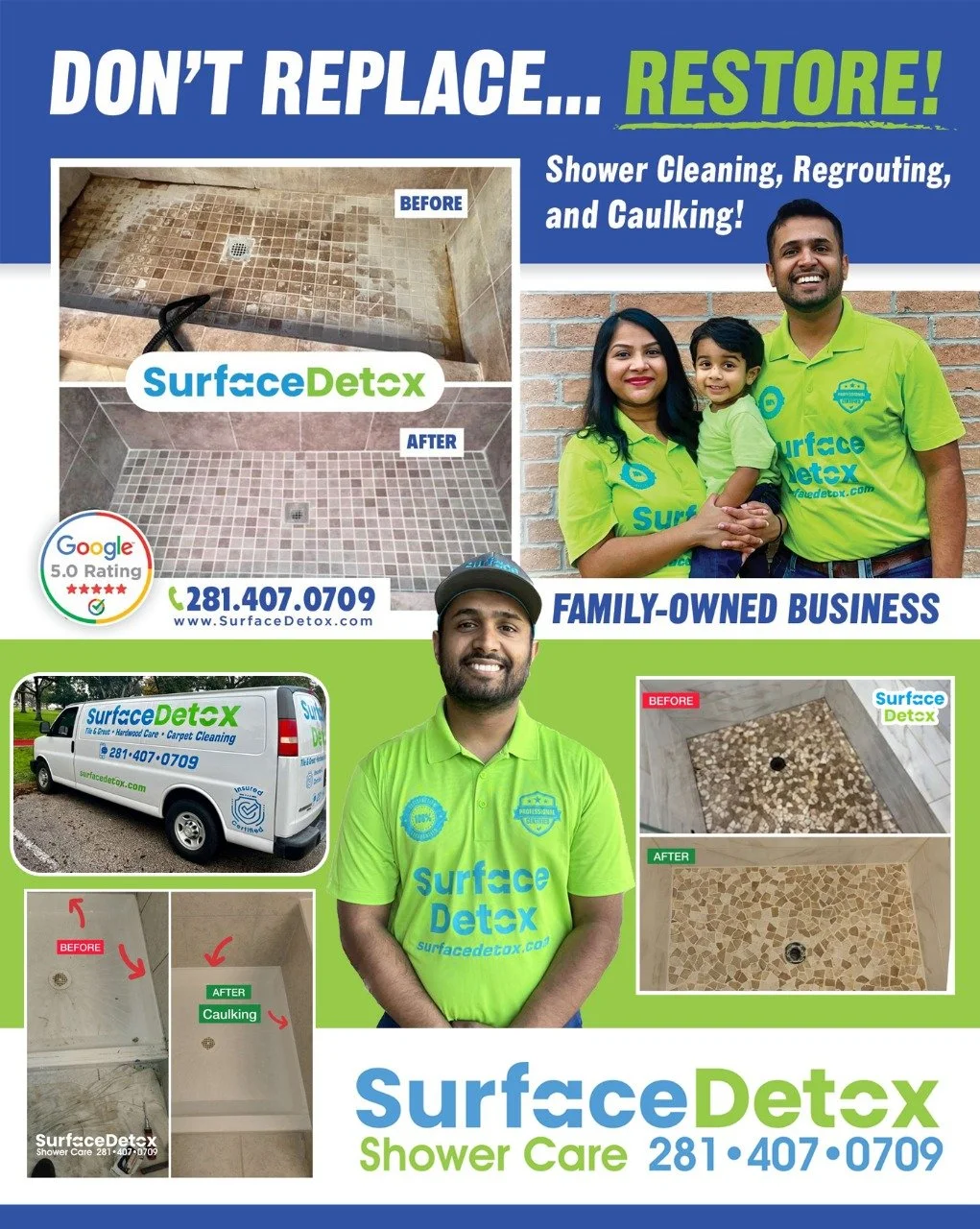 SurfaceDetox is a local, family-owned business specializing in professional grout services, particularly for tile and grout, showers, and floors. Based in Houston, Texas